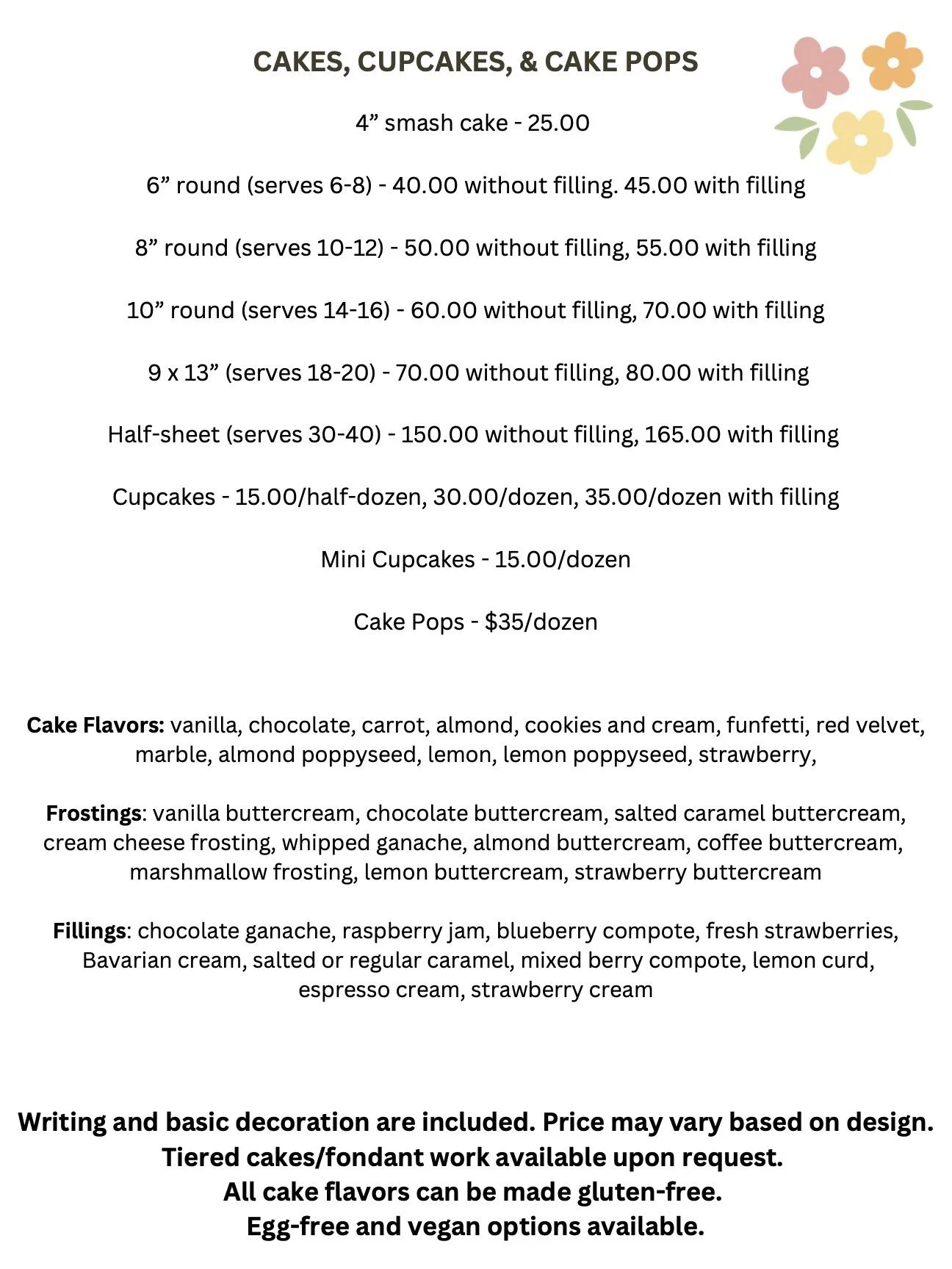 Interested in a custom cake, some cookies, or anything else? Fill out your info including what you would like to order and date/time needed. I will be in touch via email shortly!