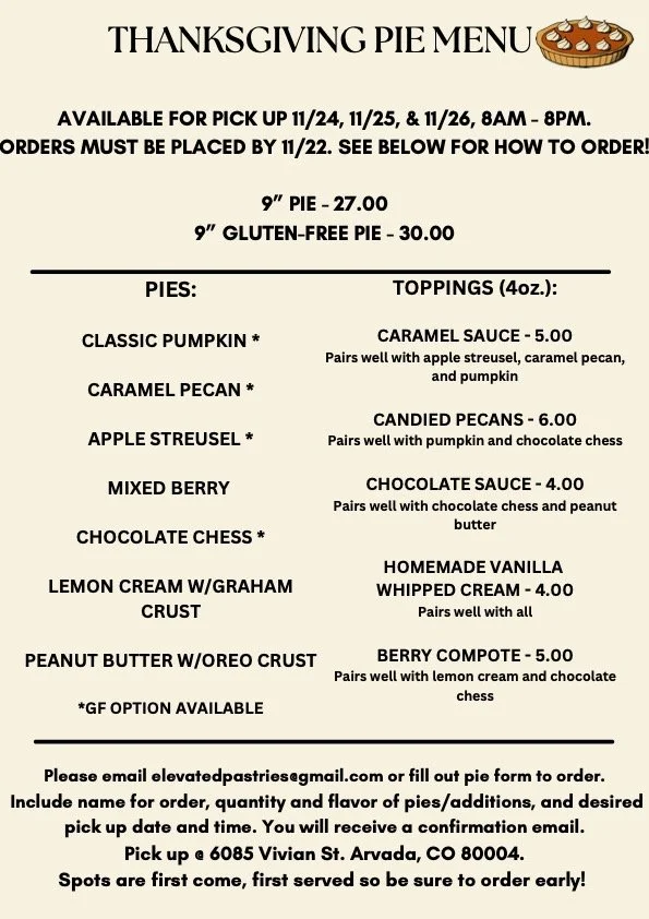 Fill out the order form below and I will send a confirmation email. Please note pick up days/times are first come, first served.